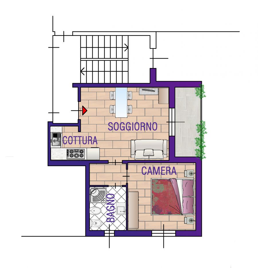 DUE LOCALI AL PIANO TERRA – Proponiamo in esclusiva soluzione di due locali con ambiente con angolo cucina, spazioso terrazzo panoramico, camera e bagno